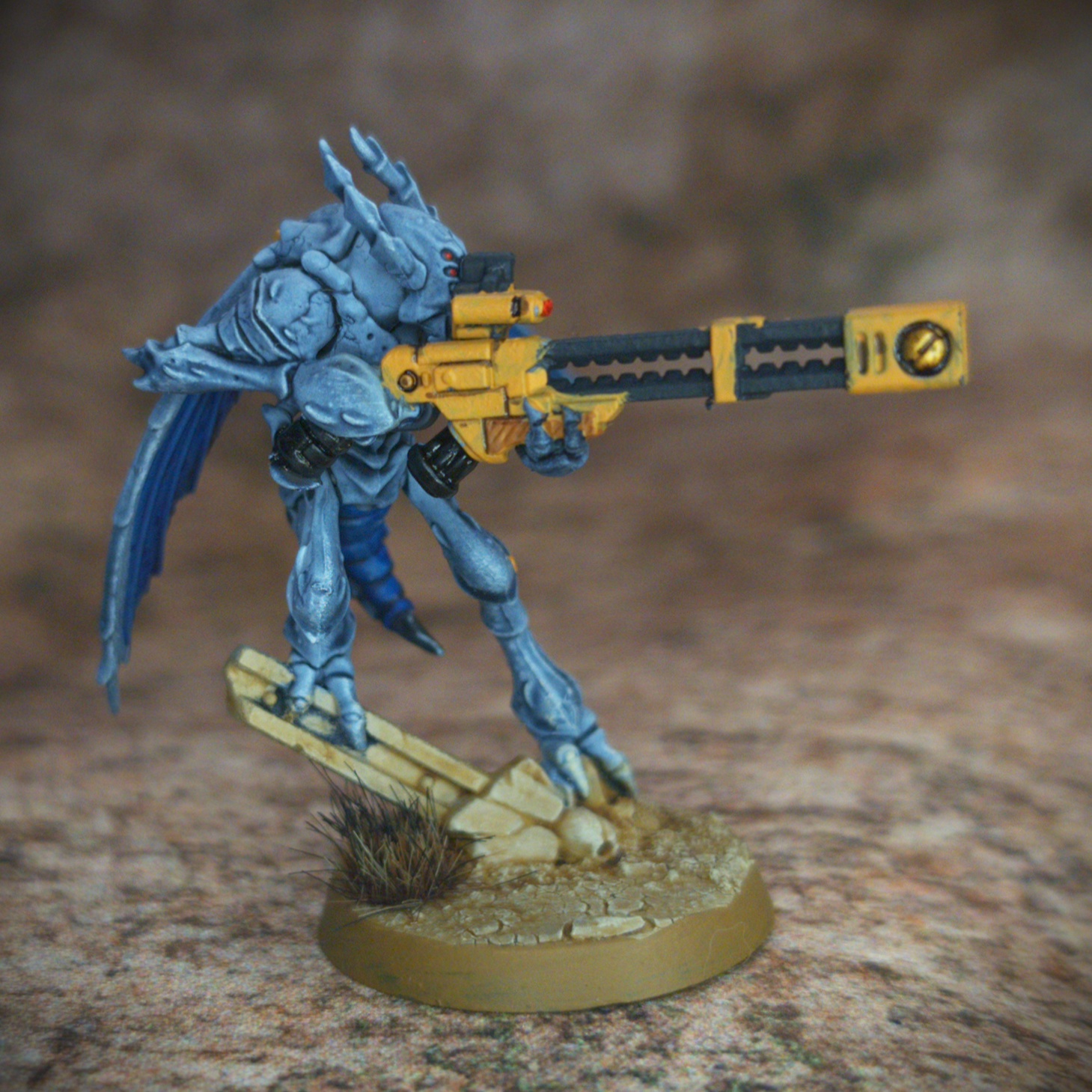 I eventually decided on a blue-grey scheme for the chitin, it would pay homage to my old scheme and contrast nicely with the orange-brown weapons.