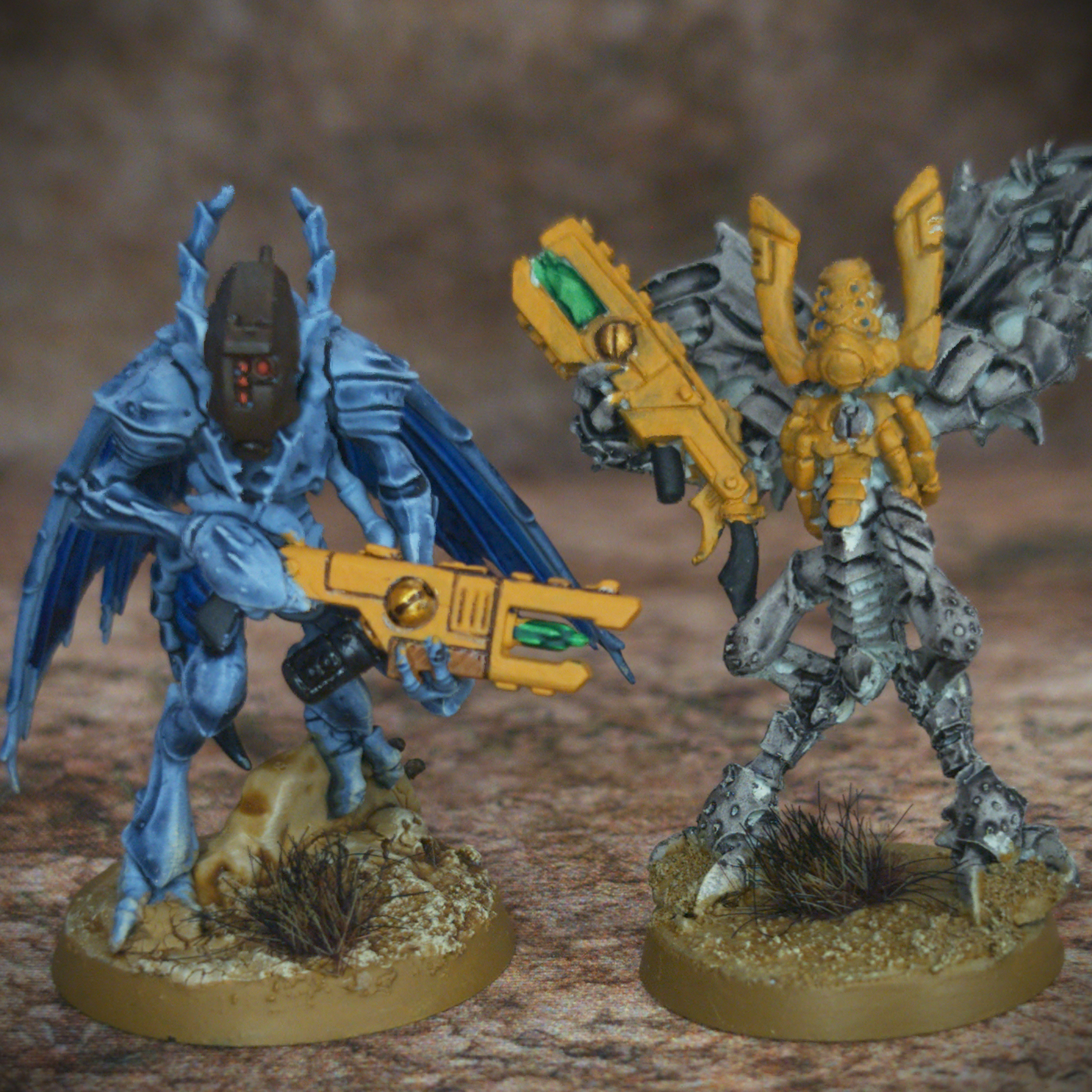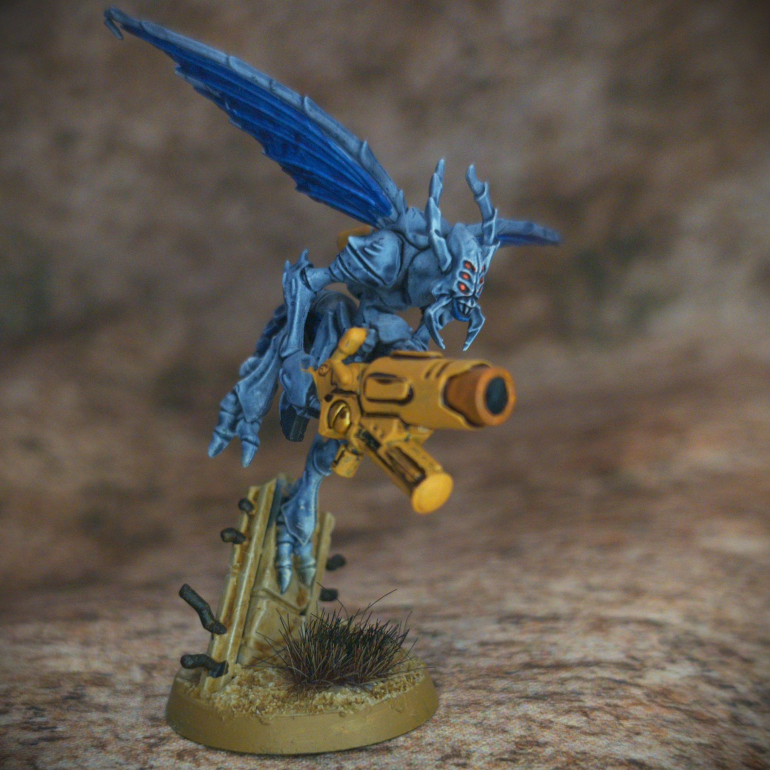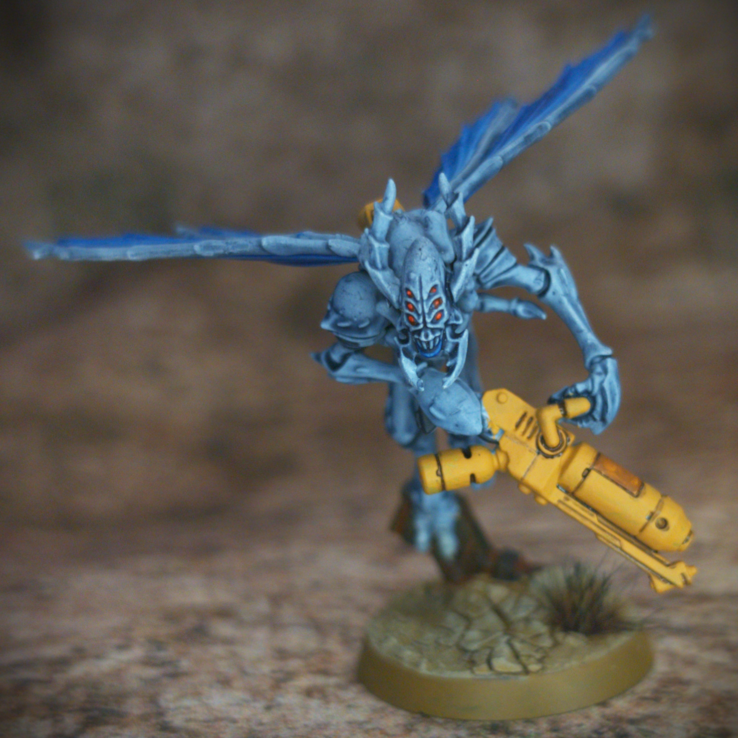 It took me a while to get to the Vespids as I wasn’t sure what my colour scheme was going to be. The armour and weapons would obviously match the rest of my Tau forces but I wasn’t sure about the chitin and flesh. I had some of the old resin Vespids from back in the day and I had pretty much slapped a coat of Basilicanum Grey on them and called it a day. I briefly toyed with the idea of replicating the old scheme but doing a better job, however the more I thought about it the more I felt that grey chitin would be quite monochromatic and dull.